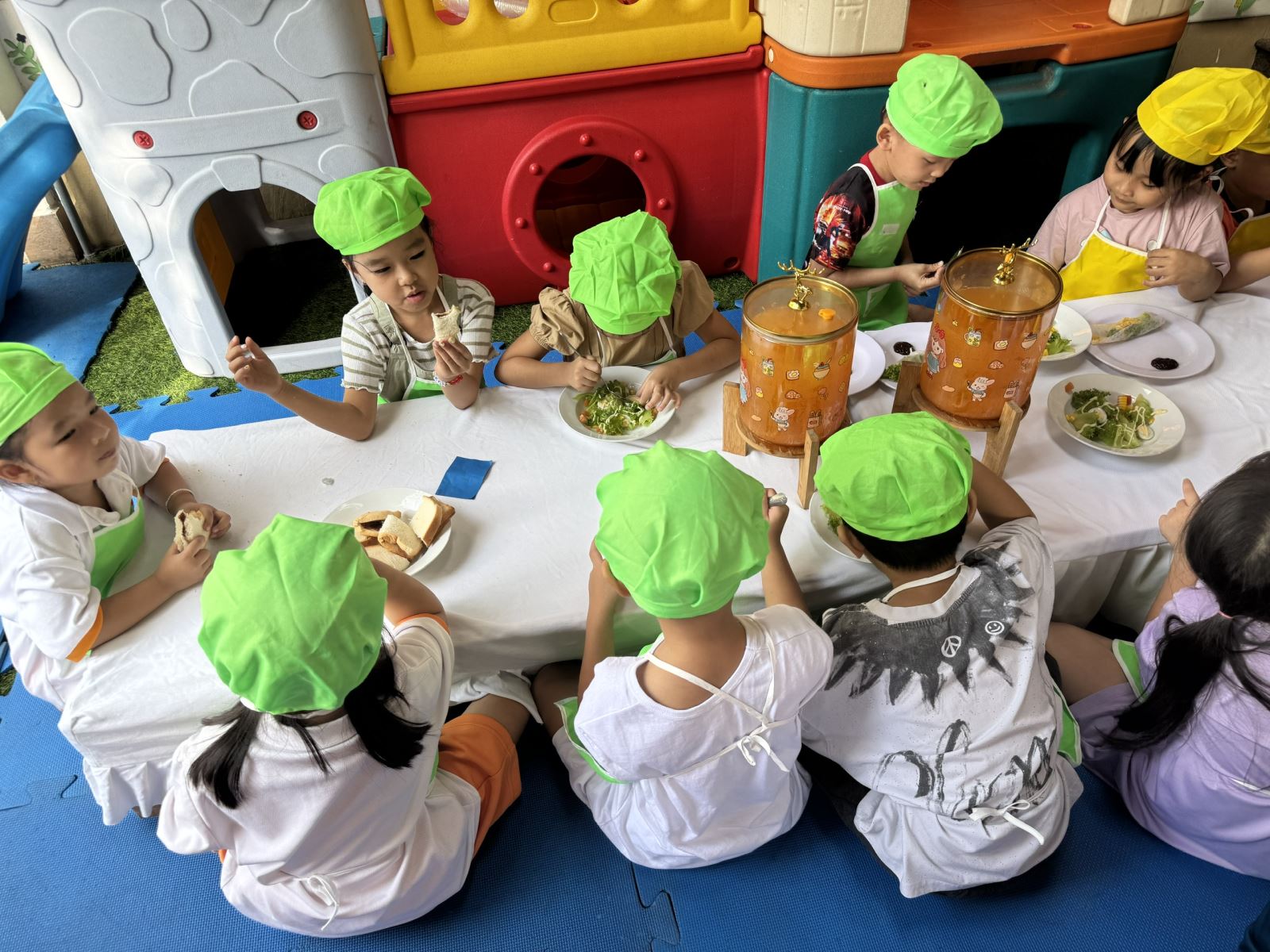Tổ chức cho trẻ tự chọn các món ăn dinh dưỡng, màu sắc phong phú, giúp trẻ rèn luyện kỹ năng tự phục vụ và giao tiếp.